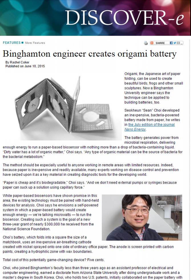 2015. 02. 10 - Our work was reported by Discover-e Newsletter at BU and BU website.