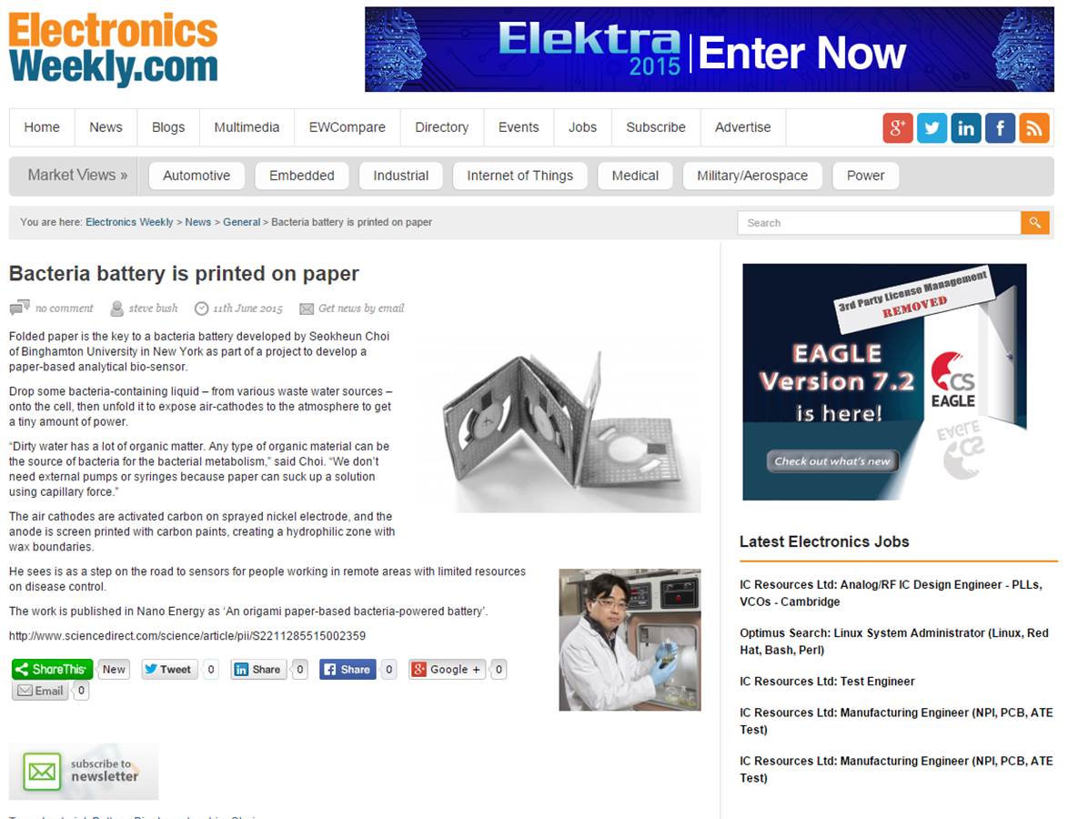 2015. 06. 10 - Our work was reported by Discover-e Newsletter at BU and Electronics Weekly in the UK
