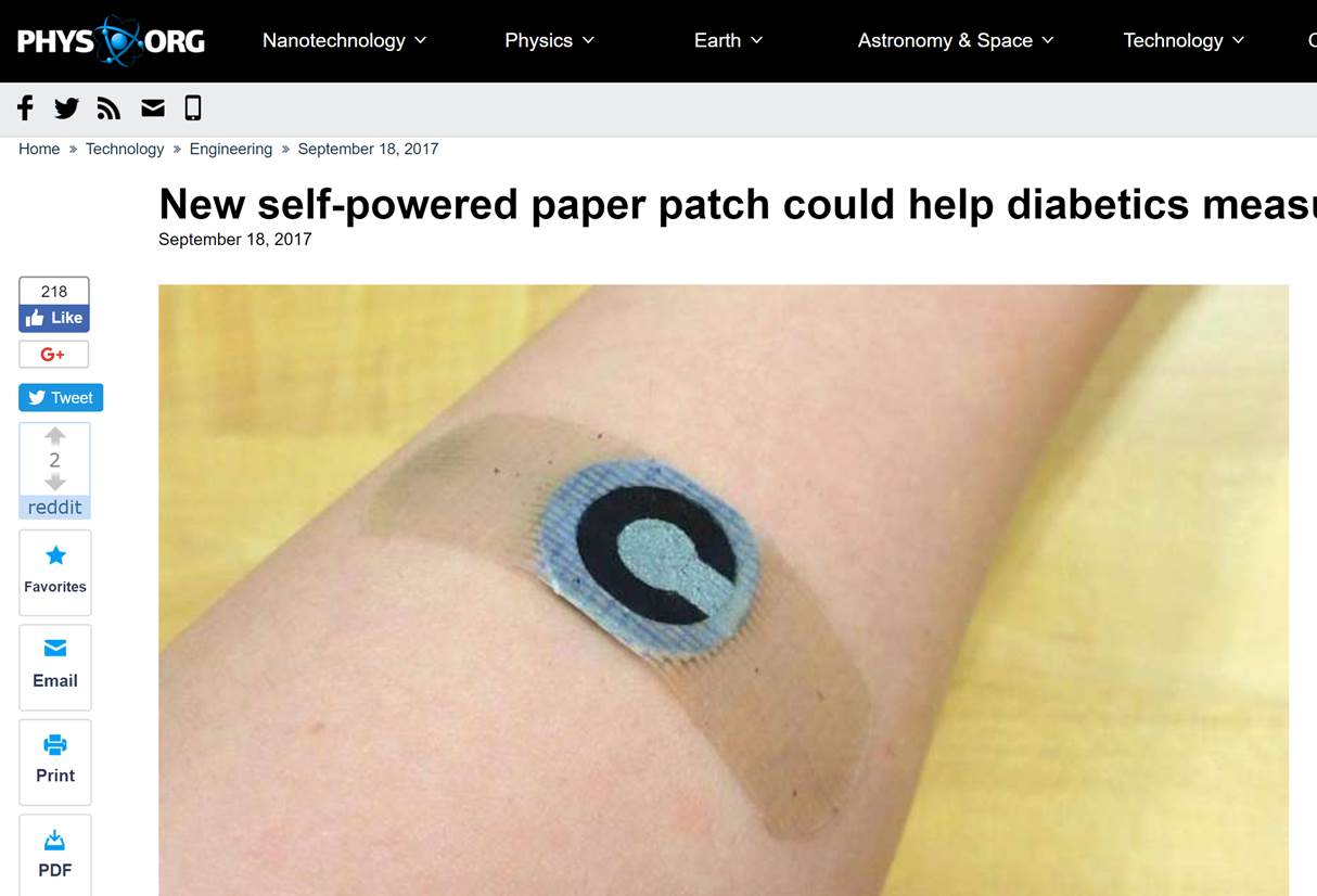 2017. 9. 19 - Many news agencies highlighted our work on the glucose sensor. The media outlets include Phys.org, ScienceDaily, Wareable, BioSpace, and many others.
