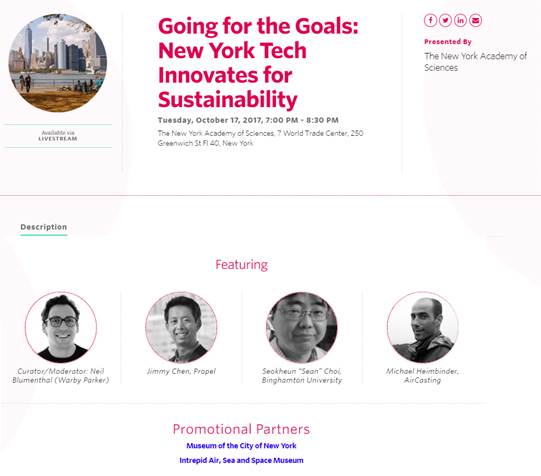 2017. 10. 17 - Dr. Choi was invited as a speaker for the Second Annual Summit on Science Enablement for the Sustainable Development Goals, sponsored by the New York Academy of Sciences, in New York.