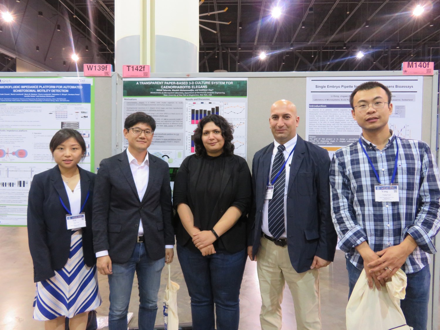 2017. 10. 26 - We made 7 presentations at the MicroTAS 2017 conference (from left in the picture: Lin, Gihoon, former group member, Maedeh, Mehdi, and Yang).