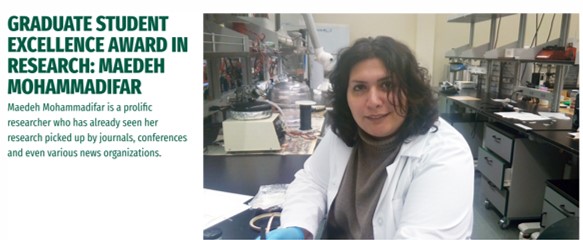 2019. 1. 14 - Our Ph.D. student, Maedeh Mohammadifar, has been selected as a recipient of a Graduate Student Excellence Award for Excellence in Research for 2019.
