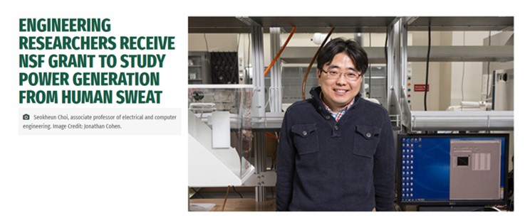 2019. 5. 1 - Dr. Choi, as PI in collaboration with co-PI Dr. Koh at BME, received a $452k grant from NSF for research on Bioenergy Generation from Sweat-Eating Bacteria.