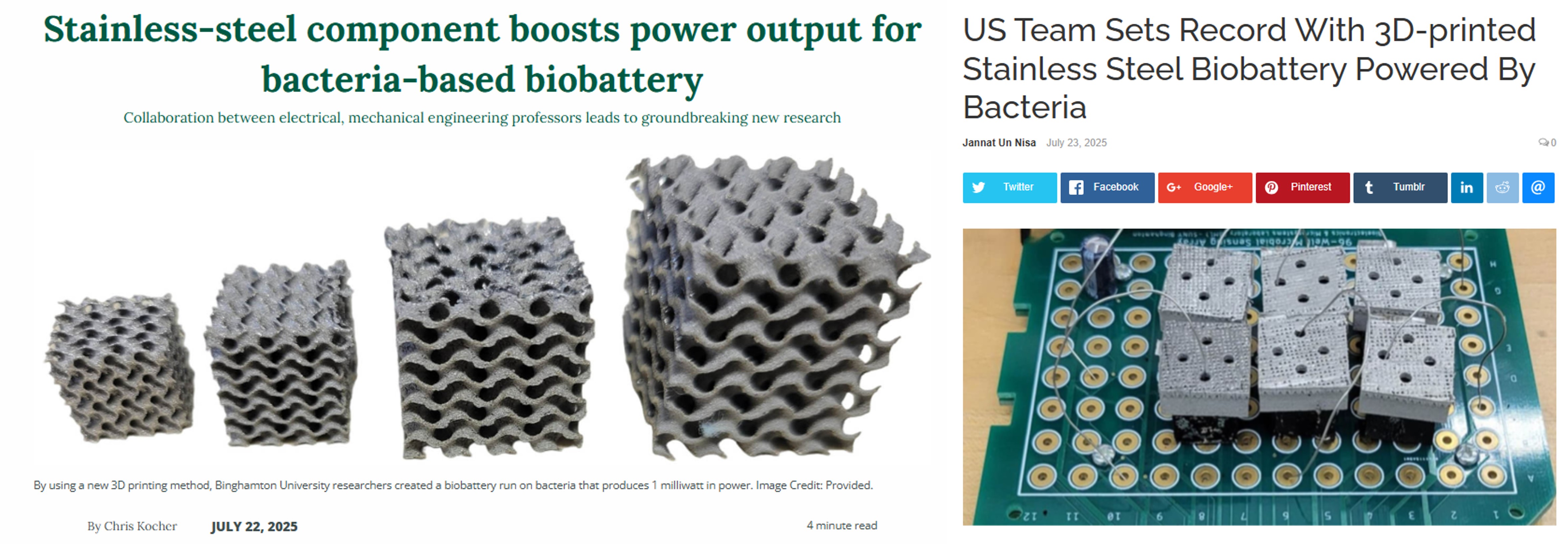 2025. 7. 22 - Our research article on "3D printed microbial fuel cells" has been featured in news media outlets.