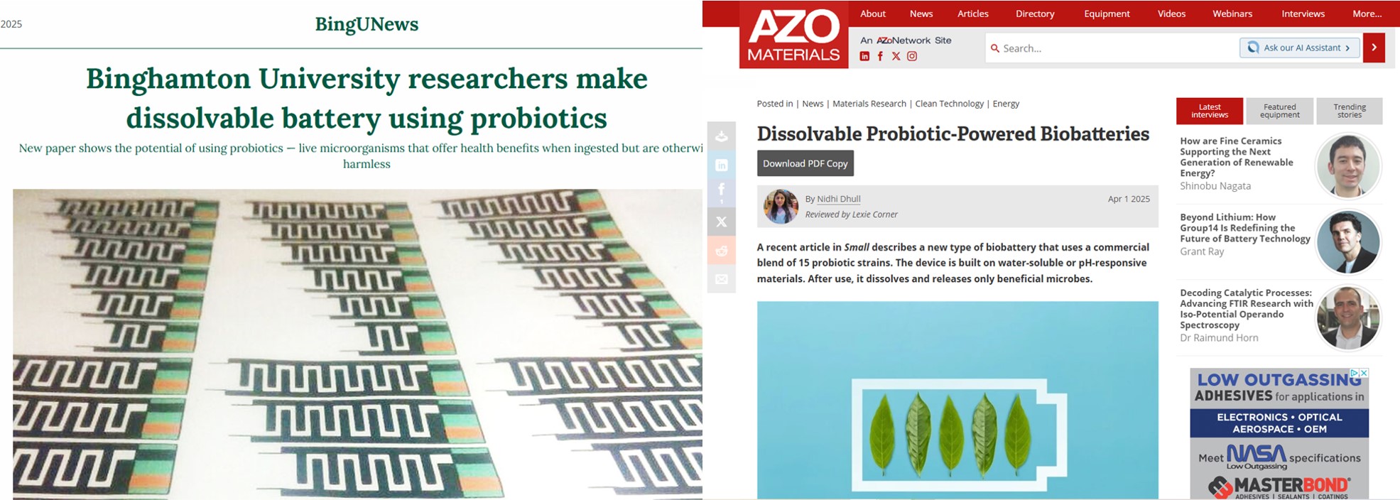 2025. 4. 10 - Our research article on "dissolvable probiotic-powered biobattery" has been featured in news media outlets.