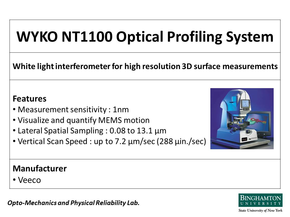 Wyco surface profiler is our non- contact surface metrology tool which can obtain accurate surface topography.
